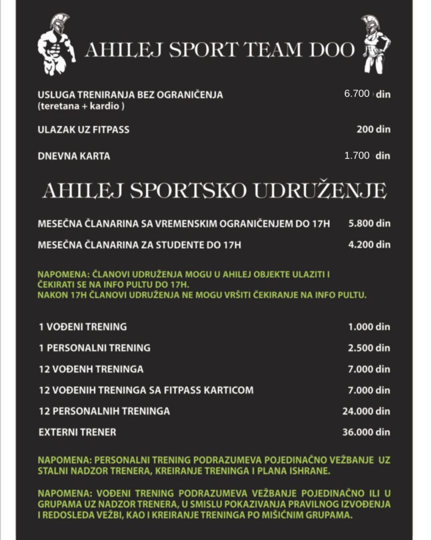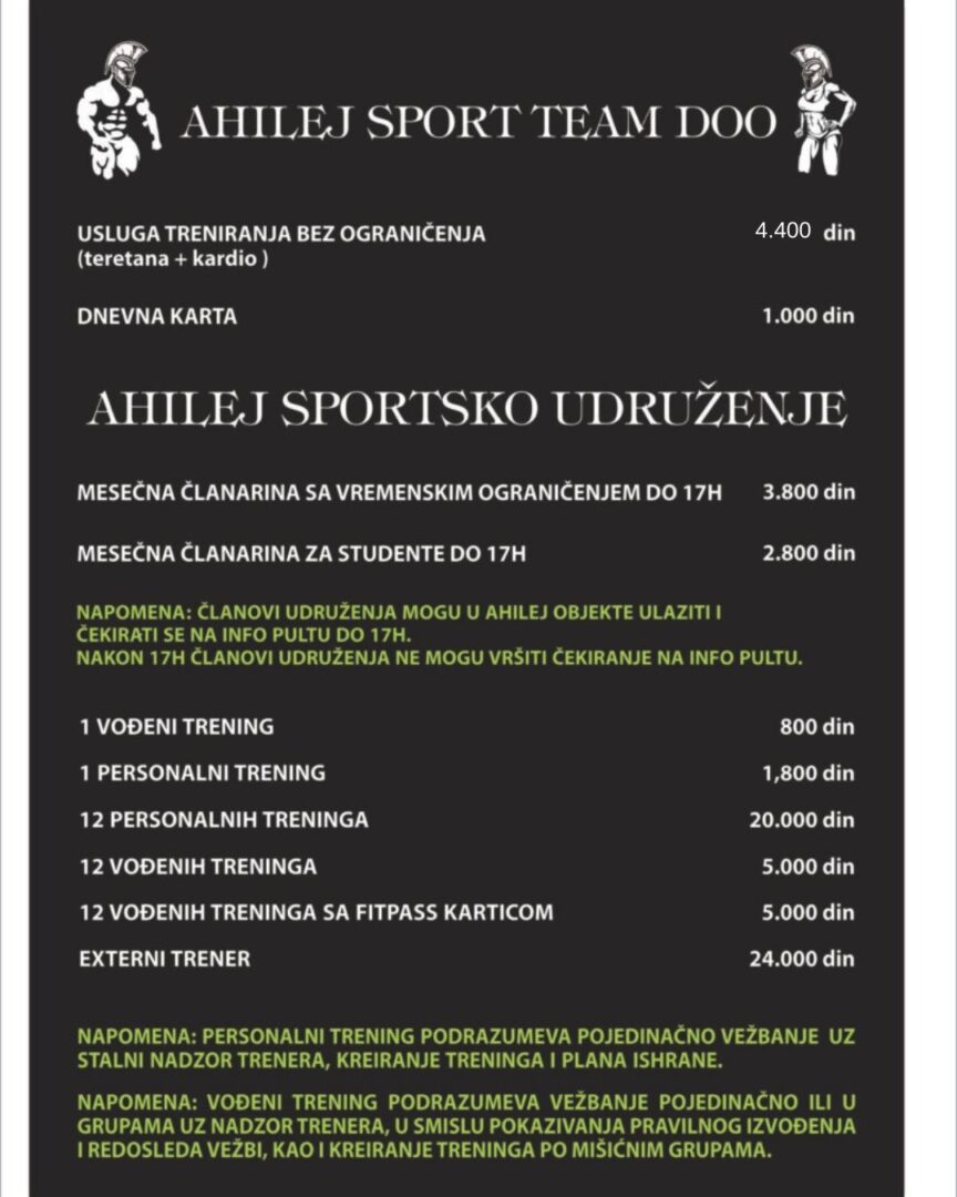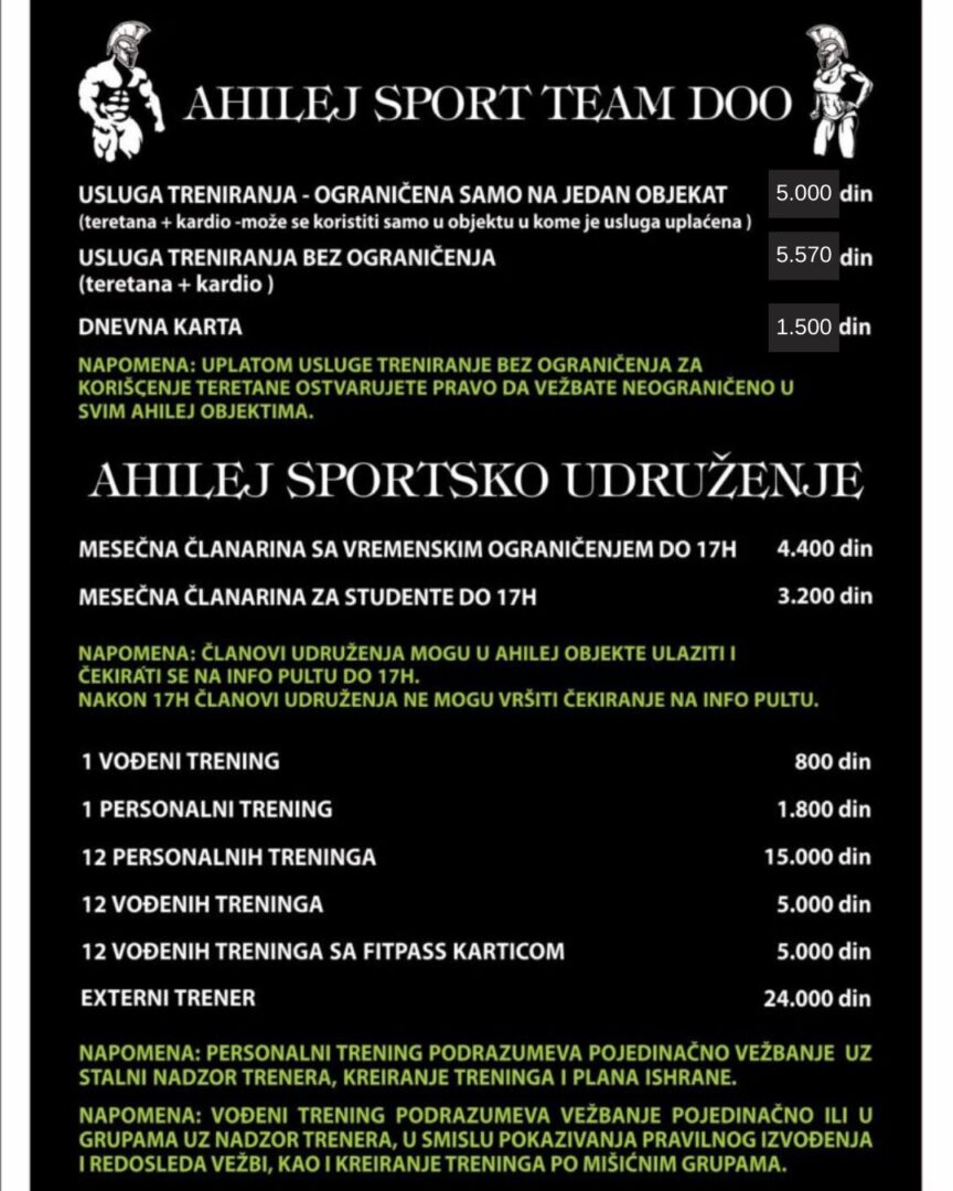 Cenovnik Ahilej Arena Ahilej Retro Gym Ahilej Retro Total Hard Ahilej Gym Classic Ahilej Novi Sad Ahilej Pancevo Ahilej Sava Centar